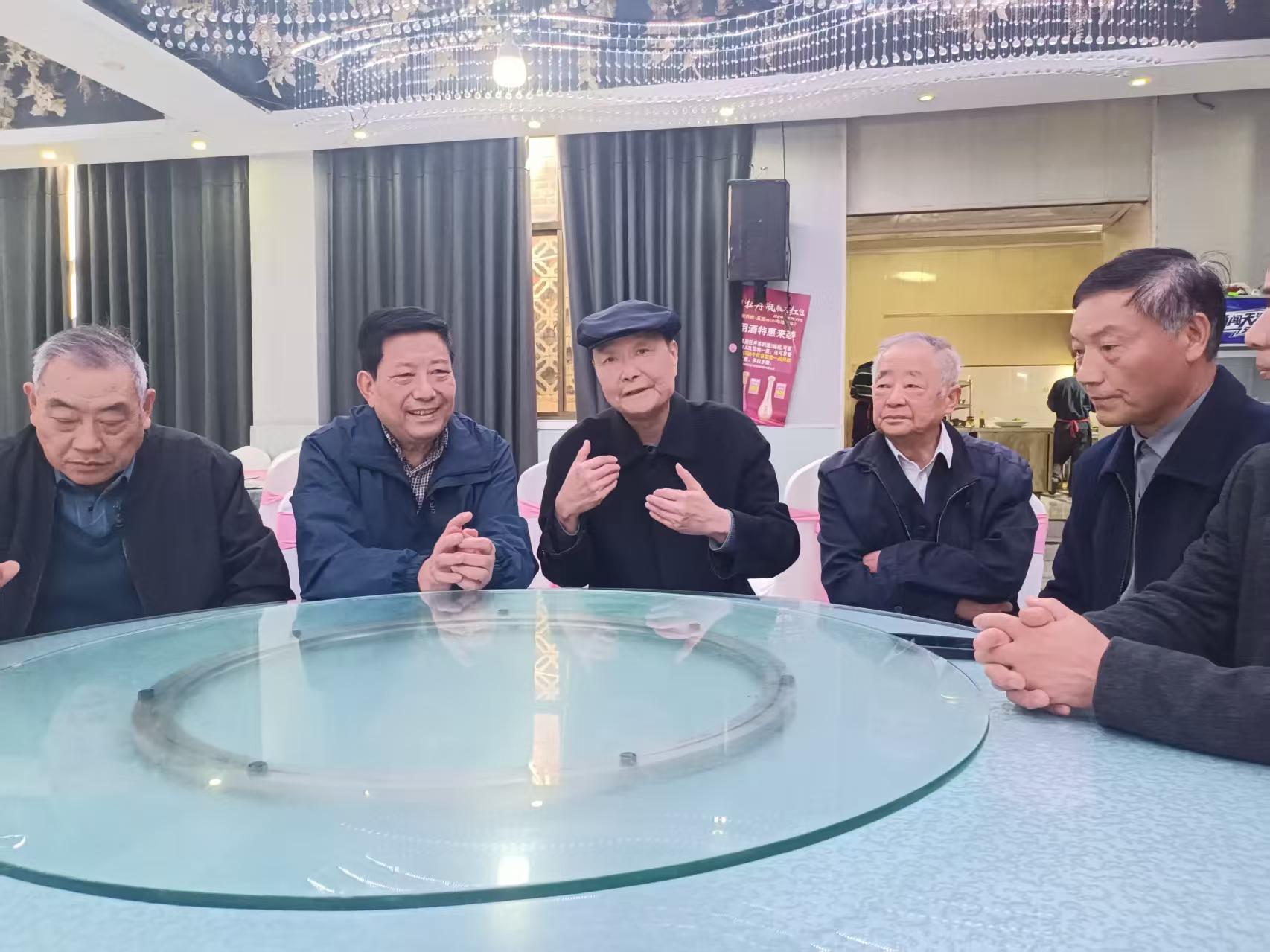 午宴开席,杯中酒醇,席上情浓。敬酒声起,话题自然而然飘向了那段烽火连天的岁月。刘扬生先生细说新四军二师在抗日战场上的浴血奋战,每一个战役细节都鲜活如昨,仿佛能看见将士们冲锋的身影;汤如成会长娓娓道来新四军军部在江淮大地的峥嵘往事,字里行间满是信仰的力量,叩击人心;马培荣主任则将天长、盱眙的历史脉络与红色记忆细细交织,让脚下这片曾见证革命岁月的土地,更添几分厚重与深情。众人听得入神,时而为将士们的英勇壮举屏息凝神,时而为军民同心的鱼水深情由衷赞叹,两个时辰的光阴,便在这深情的追忆与热烈的交流中悄然溜走。